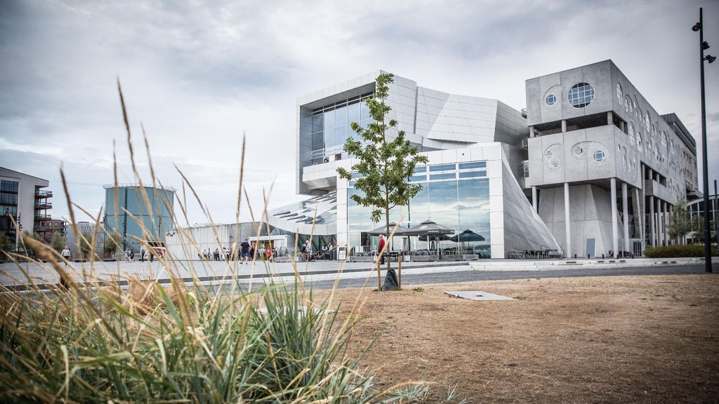 Musikkens Hus is designed by the renowned, Austrian architect firm, Coop Himmelb(l)au and covers approx. 20.000 m2 divided onto eight floors (three underground), and contains a large concert hall, a medium concert hall, and two minor concert halls.